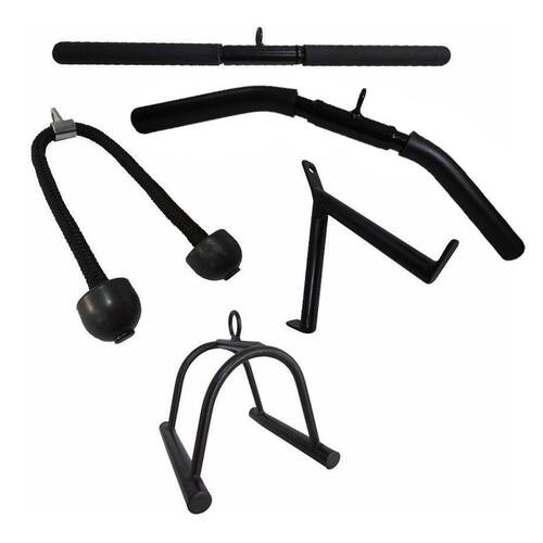 ----- kit 5 puxadores academia musculação treino ------ 05 unidades : 01 puxador reto com giro 50 cm , 01 puxador curvo com giro 50 cm, 01 puxador corda, 01 puxador v , 01 puxador triangulo Puxadores reto e curvo 50 cm feitos em aço com pega emborrachada, giro central e ótimo acabamento. Puxador corda tríceps feito em com corda trançada, reforçado e alta qualidade, alça de encaixe em aço cromado e apoio de mão em pvc, maciez nos exercícios evitando calos. Puxadores v e triangulo feitos em aço com soldas reforçadas. Todos feitos em alta qualidade para serem usadas nos mais diversos aparelhos de sua academia, vai tornar seu treino mais completo, produto de , nacional e com . Especificações técnicas puxadores reto e curvo - material: tubo oco de aço 1020 - parede do aço: 2 mm - material argola: aço trefilado 1020 com 6,5 mm de espessura - material da pega: manopla emborracha de 1 1/4 32mm - todo soldado em mig soldas reforçadas - pintura eletrostática texturizada e anti-ferrugem - comprimento total do puxador: 50 cm - peso do produto unidade : 1 kg - cor: preto Especificações técnicas puxador corda - material: corda trançada em polipropileno virgem - diâmetro: 25 mm de espessura - material encaixe mosquetão: aço cromado com solda reforçada - material de apoio do punho: pvc maciço - corda profissional com alma de pvc maciço - comprimento total do puxador: 75 cm 37,5 cada lado pendurado - peso do produto unidade : 600 gramas - cor: preto Especificações técnicas puxador v - material: tubo oco de aço 1020 1 - parede do aço: 2 mm - material argola: aço trefilado 1020 com 6,5 mm de espessura - todo soldado em mig soldas reforçadas - pintura eletrostática texturizada e anti-ferrugem - comprimento total do puxador: 25 x 30 cm altura x largura - peso do produto unidade : 600 gramas - cor: preto Especificações técnicas puxador triangulo - material: tubo oco de aço 1020 1 - parede do aço: 2 mm - material dos arcos: tubo oco de aço 1020 1/2 12,7 mm espessura - material argola: aço trefilado 1020 com 6,5 mm de espessura - todo soldado em mig soldas reforçadas - pintura eletrostática texturizada e anti-ferrugem - comprimento total do puxador: 17 x 14 cm altura x largura - peso do produto unidade : 1 kg - cor: preto Conteúdo: 01 puxador reto com giro 50 cm , 01 puxador curvo com giro 50 cm, 01 puxador corda, 01 puxador v , 01 puxador triangulo