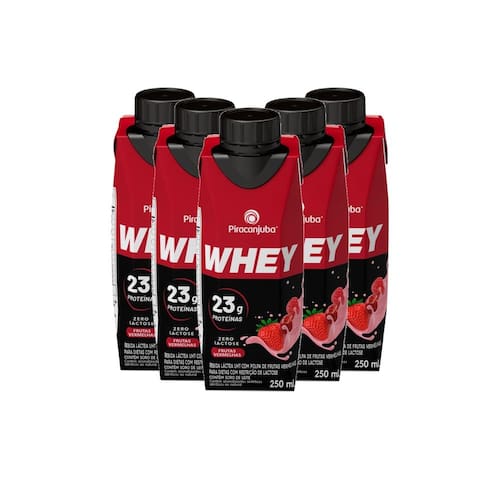 Kit 5 Bebida Láctea Piracanjuba Whey Zero Lactose com 23g de Proteína Sabor Frutas Vermelhas 250ml