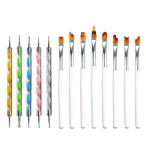 Contém: 08 - Pincéis com pontas cortadas a mão especialmente para decoração de unhas e fabricação de adesivos; 05 - Boleadores para Decoração de Unhas e Pontilhismo. Atenção: Cores dos pincéis enviadas conforme , podendo ser branco ou rosa. As pontas dos pincéis podem variar um pouco em relação as fotos, pois são feitas artesanalmente. Nosso kit de pincéis para decoração de unhas contém uma variedade e versatilidade de pincéis, suas cerdas são feitas artesanalmente, recortadas a mão, fazendo cada um ser único, com diferentes tamanhos e formas, podendo assim ser pouco diferente das fotos, porém cada um projetado para executar uma técnica específica na arte das unhas, seja decoração ou auxiliando em técnicas de alongamento. Os boleadores são instrumentos que possuem de diversos tamanhos em suas pontas, ideais para fabricar bolas em artes, desenhos e pinturas. Essencial na decoração de unhas, pois facilita a criação de formas e desenhos como florzinhas e bolinhas de diferentes tamanhos. Características Principais: -pontas diferentes; -cerdas macias; -fácil de limpar; -cabos ergonômicos e pequenos para transportar; -compatível para Nail Art e Técnicas de Alongamentos de Unhas; -versátil e prático; -todos os pincéis possuem uma proteção de plástico para guardar e não danificar as pontas. Boas Compras ;