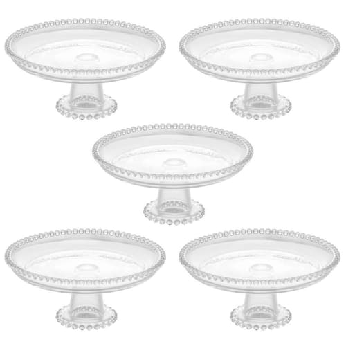 Kit 5 Boleiras de Cristal Wolff Pearl 20x9cm Prato com Pedestal Bolo Pudim Hotel Restaurante.