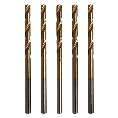 Kit com 5 Brocas 2.4mm Aço Rápido HSS Titânio para Micro Mini Retíficas Dremax