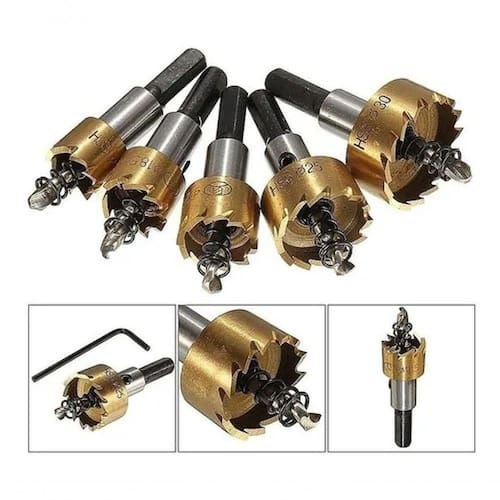 Kit com 5 brocas Serra copo para fazer furos em Aço, ferro, cobre, bronze, alumínio, fibra de vidro, e etc.