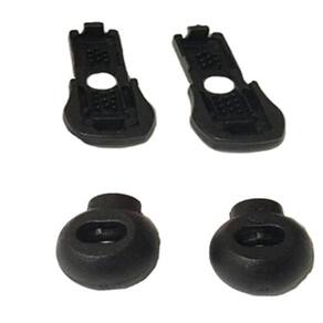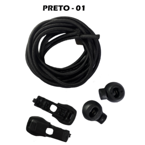 Cada embalagem contém : 1 par de cadarços elásticos de 3mm de diâmetro com 110 cm de comprimento, 2 Reguladores, 2 ponteiras.