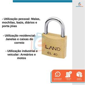 Os cadeados Land são produzidos com matérias-primas de primeiríssima qualidade que garante grande resistência e durabilidade, mesmo em ambientes úmidos. Seu corpo feito em latão maciço, possui haste em aço e acabamento cromado que aumenta a resistência ao corte.