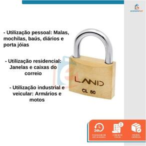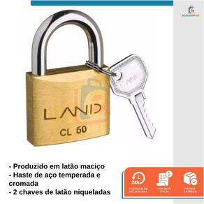 Os cadeados Land são produzidos com matérias-primas de primeiríssima qualidade que garante grande resistência e durabilidade, mesmo em ambientes úmidos. Seu corpo feito em latão maciço, possui haste em aço e acabamento cromado que aumenta a resistência ao corte.