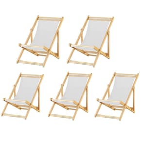 Kit 5 Cadeira Madeira Espreguiçadeira Dobrável Sb-branco 5 ESPREGUIÇADEIRAS EM MADEIRA S/BSabe aquele final de tarde que você tanto espera para tirar um descanso merecido? Ou aquela viagem para a praia programada a meses com a família? Pois é, nossas cadeiras espreguiçadeira serve exatamente para esses momentos, com várias opções de cores, os tecidos além de charmosos são hidro-repelentes e se adequam a qualquer ambiente, facilmente removíveis para higienização.Estrutura 100% de madeira maciça de ótima qualidade, a espreguiçadeira é totalmente dobrável e reclinável (4 posições de ângulo), perfeita para seu lazer em todos os ambientes, seja ele externo ou interno, esse é o item que definitivamente não pode faltar na vida de quem de fato, quer aproveitar bons momentos! FICHA TÉCNICA DO PRODUTO:04 Níveis de Regulagem de Altura; Tecido Reforçado; Fabricada em Madeira Maciça Pinus; Peso aproximado: 7,5 Kg; Suporta aproximadamente 120 kg; Cor da Madeira: ; Dimensões aproximadas do Produto: Altura 1: 69 cm; Altura 2: 82 cm; Altura 3: 91 cm; Altura 4: 100 cm; Profundidade: 105 cm. Dimensão aproximada total: Comprimento: 135 cm; Largura: 60 cm; Informações Adicionais:Garantia: 90 dias contra defeitos de fabricação. Obs. A cor pode variar da foto conforme a tonalidade da madeira e iluminação.. !!