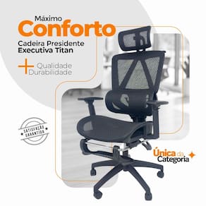 Com estrutura resistente e acabamento em Tela Mesh Nylon, a Titan garante ventilação, durabilidade e um design moderno que agrega elegância ao seu espaço de trabalho.