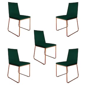 Kit 5 Cadeiras de Jantar Estofada Lille Base Bronze Veludo Verde chegou essa incrível novidade para você, que deseja inovar e decorar o seu espaço com muito Estilo. A Cadeira Lille possui uma matéria-prima de ótima qualidade, garantindo conforto e durabilidade do produto. Possui variações de cores tanto na base e no assento, oferecendo várias opções de escolha para sua decoração.