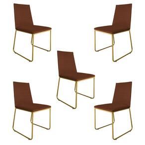 Kit 5 Cadeiras de Jantar Estofada Lille Base Gold Veludo Terracota - Montanaris Decor - Laranja