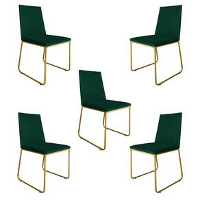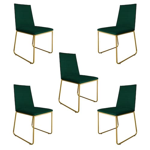 Kit 5 Cadeiras de Jantar Estofada Lille Base Gold Veludo Verde - Montanaris Decor