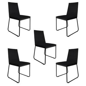 Kit 5 Cadeiras de Jantar Estofada Lille Base Preta Veludo Preto - Montanaris Decor
