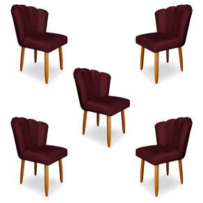 Kit 5 Cadeiras de Jantar Pétala Estofada Pés Palito Veludo Bordô - Montanaris Decor