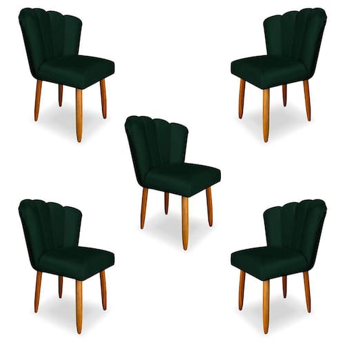 Kit 5 Cadeiras de Jantar Pétala Estofada Pés Palito Veludo Verde - Montanaris Decor