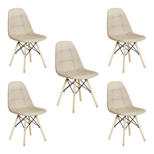 Kit 5 Cadeiras Decorativas Sala e Escritório Cadenna PU Nude Gran Belo criada com alto padrão de design e sofisticação a cadeira Cadenna é o móvel perfeito pra compor seu projeto de interior. O encosto e assento revestidos em poliuretano fácil de limpar e com acabamento impecável, além de sua estrutura em madeira com reforço em metal.