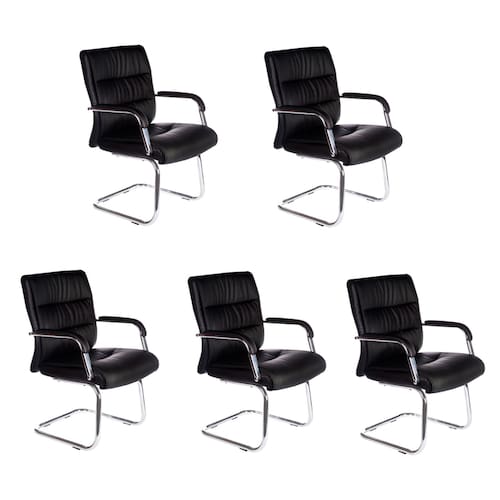 Kit com 5 Cadeiras Escritório Fixa Interlocutor Estofada Preta W-50A