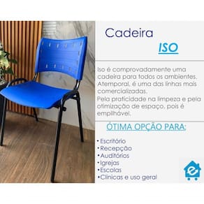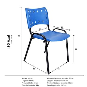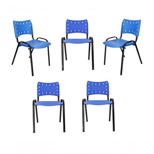 Kit 5 Cadeiras Iso Para Escola Escritório Comércio Azul Base Preta