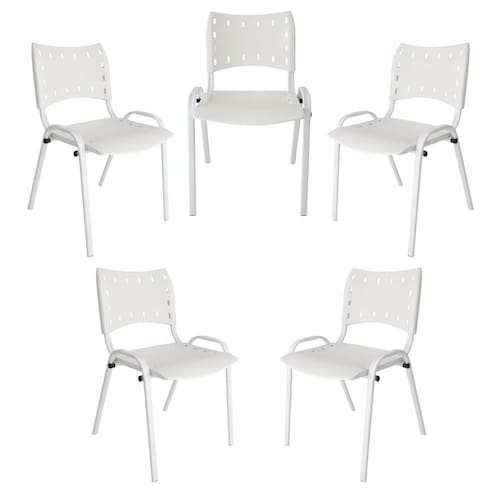 Kit 5 Cadeiras Iso Para Escola Escritório Comércio Branca Base Branca