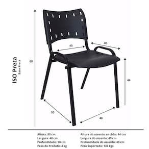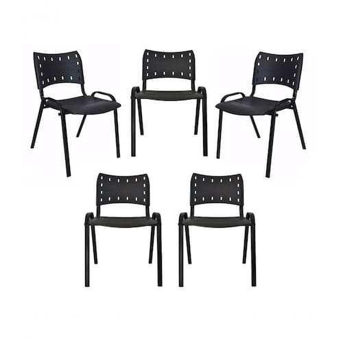 Kit 5 Cadeiras Iso Para Escola Escritório Comércio Preta Base Preta