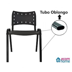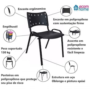 Estrutura em aço com pintura epóxi eletrostática na cor preta, assento e encosto fabricados com polipropileno de alta resistência garantindo qualidade e durabilidade do produto, permitindo ser utilizada em área externa.