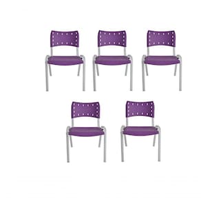Kit 5 Cadeiras Iso Para Escola Escritório Comércio Roxa Base Branca