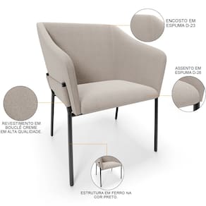 A cadeira Olívia combina o design industrial da estrutura de ferro, com a delicadeza do revestimento e conforto do assento e encosto estofados. Além disso, a versatilidade também é outra característica que vale a pena ser destacada, já que você poderá aproveitá-la como cadeira para sala de jantar, área gourmet ou como poltrona decorativa para compor espaços como sala de estar, living, recepção, escritório e até mesmo no quarto. Não deixe para depois, aproveite hoje mesmo e transforme a sua casa com o conjunto de cadeiras Olívia. Você vai se surpreender!