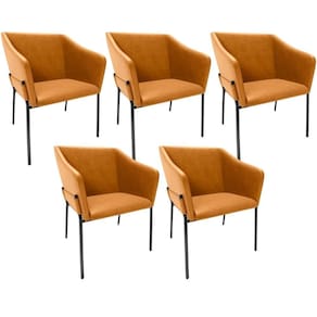 Que tal inovar na sala de jantar e apostar em um modelo de cadeira de jantar estilo poltrona?! Isso mesmo, com o Kit 05 Cadeiras Para Sala de Jantar Estar Living Olívia L02 Couríssimo Whisky, da Lyam Decor, você pode.
