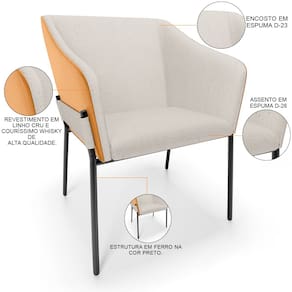 Revestimento em Linho na cor Cru e Couríssimo na cor Whisky de alta qualidade.