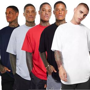 Conteúdo do produto: Kit 5 Camisas Oversized Algodão Básicas Gola Alta Vermelho, Preto, Branco, Azul e Cinza