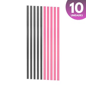 o kit contém 5 canudos preto + 5 canudos pink
