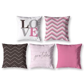 Kit 5 Capas De Almofada 40Cm X 40Cm Estampadas Chevron Rosa