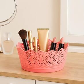 * Kit 5 cestos organizadores redondos telados 21cm organização cozinha sala closet penteadeira rosa: desempenho consistente e uso intuitivo no dia a dia.
