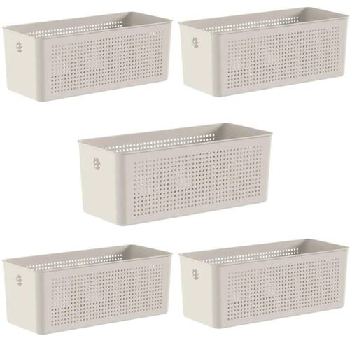 Kit 5 Cestos Organizadores Retangulares com Alças 6,6L Bege Flow Lavanderia Closet Banheiro.