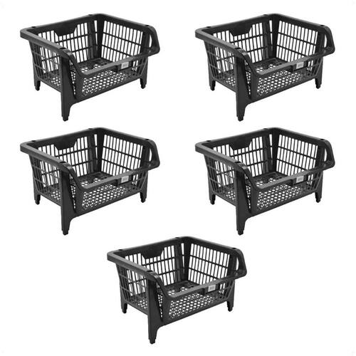 Kit 5 cestos plásticos expositor preto 44,5x20,5x35cm