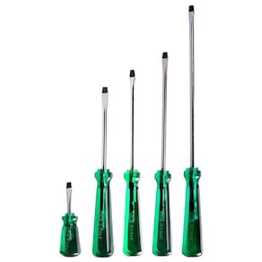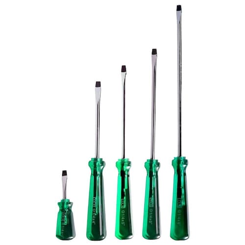 Kit com 5 Chaves de Fenda 1/4 Toco a 200mm em Aço Cr-V com Imã Profissional EDA A Chave de Fenda é uma ferramenta útil, utilizada nos trabalhos de oficinas mecânicas, indústrias, serviços domésticos e diversos outros. Fabricada em aço cromo vanádio, ponta imantada, cabo feito em material com maior rigidez e resistência, tornando a chave ideal para satisfazer as mais elevadas exigências. - Marca: Eda - Referência: KITCHF-5 - Ponta: 1/4 - 1 Chave de Fenda 1/4 X 1.1/2 toco - 1 Chave de Fenda 1/4 X 4 - 1 Chave de Fenda 1/4 X 5 - 1 Chave de Fenda 1/4 X 6 - 1 Chave de Fenda 1/4 X 8 - Cabo Verde Transparente - Haste em Aço Cromo Vanádio - Ponta Imantada - : 90 dias