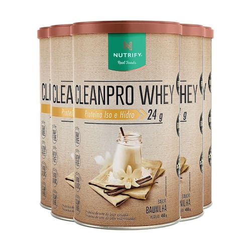 Kit 5 clean pro whey hidrolisado baunilha nutrify 450g Benefícios: aumento da massa muscular e longevidade. Uma suplementação proteica leve, de fácil digestibilidade e livre de compostos artificiais. Cleanpro whey nutrify oferece a proteína de soro do leite isolada e proteína de soro do leite hidrolisada. Rico em aminoácidos essenciais, origina uma fórmula capaz de ofertar 5 g de bcaa por dose. Na origem da matéria-prima, whey protein proveniente de gado alimentado somente com pasto grass-fed . Cleanpro whey nutrify utiliza estévia e taumatina, adoçantes 100% oriundos de fontes naturais. Nutrify valoriza a origem de cada ingrediente, respeita a integridade de suas fontes naturais e dos envolvidos em sua produção. É assim que criamos produtos saudáveis e saborosos, que fazem bem para as pessoas e para o planeta. Acreditamos que nutrir corpo e mente de modo saudável nos torna capazes de alimentar o mundo com atitudes positivas. Ingredientes: proteína de soro do leite isolada, proteína de soro do leite hidrolisada, aromatizante natural e edulcorantes naturais estévia e taumatina. Alérgicos: contém derivados de leite e soja. Ingrediente utilizado no processo de fabricação da proteína do soro de leite com função de instantaneização. Não contém glúten. Contém lactose. Contém aromatizante. Apresentação: embalagem disponível: lata contendo suplemento em pó. Sabor baunilha. Peso líquido: 450 g produto classificado como: suplemento alimentar de proteínas em pó sabor de baunilha. Conservação: conservar este produto ao abrigo de luz, calor e umidade, antes e após o primeiro consumo. Marca: Não Informado Ean: 7908609544747