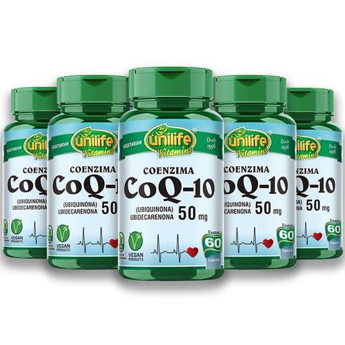 Kit 5 coenzima coq-10 - 50 mg unilife 60 capsulas veganas Sobre o produto Coenzima q10 50 mg unilife vitamins é um produto totalmente vegano. Em cápsulas de origem vegetal gelatina vegetal e água , o produto é livre de glúten e lactose. Modo de usar sugere-se a ingestão de 2 cápsulas ao dia, após a refeição. Ingerir com líquido. Ingredientes coenzima q10, antiumectante celulose microcristalina e lubrificante estearato de magnésio. Cápsula: gelatina vegetariana e água. Cada cápsula contém 50 mg de coenzima q10. Peso total da cápsula: 400 mg cada cápsula contém 50 mg de coenzima q10 Marca: Não Informado