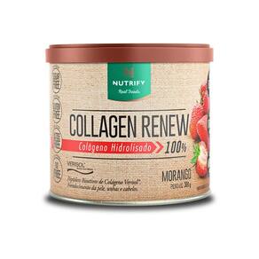 Kit 5 collagen renew colágeno hidrolisado morango nutrify 300g Benefícios: fortalecimento da pele, unhas e cabelos. A firmeza e a sustentação de nossa pele estão diretamente relacionadas à produção de colágeno pelo organismo, que diminui progressivamente ao longo dos anos, ocasionando flacidez e outros sinais de envelhecimento. À base de colágeno hidrolisado, a fórmula de collagen renew nutrify também 2,5 g de peptídeos bioativos de colágeno verisol em cada porção, ajudando a recuperar a firmeza dos tecidos, melhorando sua aparência. Collagen renew nutrify é isento de açúcar, lactose, glúten, corantes e adoçantes artificiais, e conta com adição de vitaminas e minerais antioxidantes, que favorecem a absorção dos peptídeos e promovem o fortalecimento de unhas e cabelos. Nutrify valoriza a origem de cada ingrediente, respeita a integridade de suas fontes naturais e dos envolvidos em sua produção. É assim que criamos produtos saudáveis e saborosos, que fazem bem para as pessoas e para o planeta. Acreditamos que nutrir corpo e mente de modo saudável nos torna capazes de alimentar o mundo com atitudes positivas. Ingredientes: colágeno hidrolisado, colágeno hidrolisado bioativo verisol , mix de vitaminas e minerais vitamina c ácido ascórbico , vitamina e dl alfa-acetato de tocoferol , zinco sulfato de zinco mono-hidratado , vitamina a acetato de retinol , cromo picolinato de cromo , selênio selenito de sódio , vitamina h biotina e vitamina d colecalciferol , acidulante ácido cítrico, aromatizante natural, corante vermelho beterraba e edulcorante estévia. Não contém glúten. Contém aromatizante. Este produto não é um . Não exceder a recomendação diária de consumo indicada na embalagem. Mantenha fora do alcance de crianças. Este produto é recomendado para adultos a partir de 19 anos. Apresentação: embalagem disponível: lata contendo suplemento em pó. Sabor morango. Peso líquido: 300 g produto classificado como: suplemento alimentar de proteína, vitaminas e minerais em pó sabor de morango.