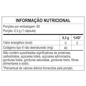 Kit 5 Colágeno Tipo II com Vitamina C Formulado com colágeno tipo II, também conhecido como não hidrolisado ou não desnaturado, é a forma mais recomendada para a reconstrução de tecidos cartilaginosos, pois é o principal componente das cartilagens. O colágeno auxilia na formação de ossos e músculos, melhora a flexibilidade e mobilidade, contribui para a recuperação de lesões e pode ajudar no tratamento de dores articulares e doenças degenerativas, como osteoartrite e artrite reumatoide, nutrindo e recuperando os tecidos articulares. A vitamina C desempenha um papel essencial ao aumentar a produção, absorção e atividade do colágeno, sendo fundamental para a formação das fibras de colágeno em todos os tecidos do organismo. Apresentação: Classificação: Suplemento alimentar em comprimidos Quantidade: 60 comprimidos de 500mg Peso líquido: 30g Conservação e Advertências: Este produto não é um . Não exceder a recomendação diária de consumo indicada na embalagem. Manter fora do alcance de crianças. Este produto não deve ser consumido por gestantes, lactantes e crianças. Armazenar em local seco, fresco e arejado. Após aberto, consumir em até 60 dias. Ingredientes: Ácido ascórbico, colágeno de frango com colágeno tipo II não desnaturado, lubrificante talco e antiumectantes estearato de magnésio e dióxido de silício. Atenção, alérgicos: Pode conter trigo, centeio, cevada e peixe. Contém glúten. Sugestão de Uso: Ingerir 1 comprimido ao dia. Recomendado para adultos a partir de 19 anos Marca: Não Informado