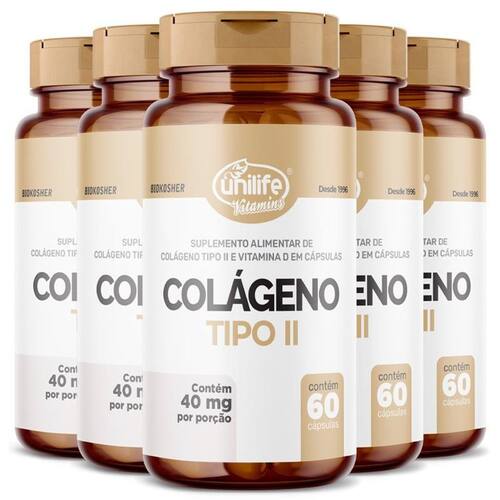 Kit 5 Colágeno Tipo II com Vitamina D Unilife 60 cápsulas