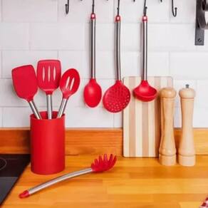 - feito de silicone, possui cabo de aço inoxidável e resiste a altas temperaturas. Pode ser utilizado também em panelas e assadeiras anti-aderentes. - possui design moderno, é fácil de lavar e é ideal para quem busca sofisticação e praticidade.