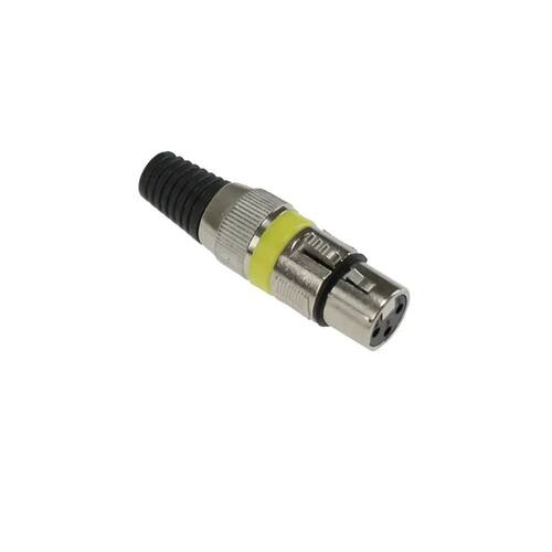 Tipo de conector: XLR fêmea de 3 pinosMaterial do corpo: Metal resistente (geralmente alumínio ou liga de zinco) com acabamento durávelCor externa: Amarelo, facilitando a identificação em sistemas de áudioPinos de contato: Banho de níquel ou prata, garantindo alta condutividade elétrica e resistência à corrosãoIsolamento interno: Feito de plástico de alta qualidade para evitar curtos-circuitos e garantir isolamento elétricoSistema de trava: Mecanismo de trava segura que impede desconexões acidentaisPrensa cabo: Sistema de prensa-cabo embutido, assegurando uma fixação firme e protegendo o cabo contra danosCompatibilidade de cabos: Suporta cabos com diâmetro de 4 mm a 8 mmResistência de contato: <10 mO (ohms), proporcionando baixa resistência e eficiência na transmissão de sinalResistência de isolamento: >1000 MO a 500V DC, oferecendo excelente isolamentoTensão nominal: Até 250V AC/DCTemperatura de operação: De -30°C a 80°CDurabilidade: Suporta mais de 1000 ciclos de conexão/desconexãoAplicações: Ideal para microfones, mesas de som, amplificadores e outros equipamentos de áudio profissional balanceado.