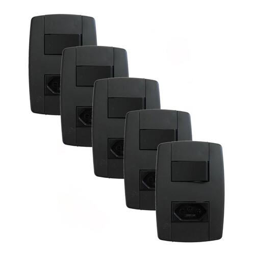 Kit 5 Conjunto Interruptor Simples + Tomada 20A 250V Preta