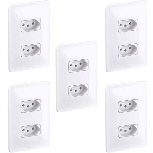 Da marca Legrand. Produto feito em termoplastico na cor Branco brilhante, com tensão nominal de 250V e corrente nominal de 10A. Conjunto de 2 tomada de 10A para alimentação de circuitos elétricosProduto Pratico de fácil instalação e excelente qualidade.Em acordo com norma ABNT NBR 14136 2P+T Kit com 5 unidades.- Qual a diferença entre o simples e o paraleloR: A principal diferença entre um simples e um é o número de pontos de controle de uma luz. A simples permite ligar e desligar uma luz a partir de um único ponto de controle, o permite ligar e desligar uma luz a partir de dois ou mais pontos de controle diferentes. Marca: Não Informado