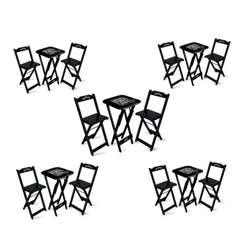 Kit 5 Conjuntos De Mesa Bistrô Dobrável Jack Daniel S Com 2 Banquetas De Madeira Preta