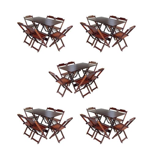 Kit 5 Conjuntos De Mesa Dobravel Com 6 Cadeiras De Madeira 120x70 Para Restaurante E Bar - Imbuia