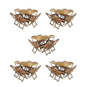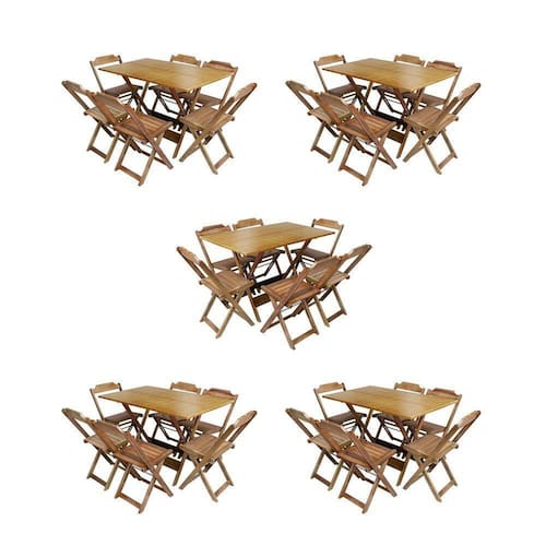 Kit 5 Conjuntos De Mesa Dobravel Com 6 Cadeiras De Madeira 120x70 Para Restaurante E Bar - Mel