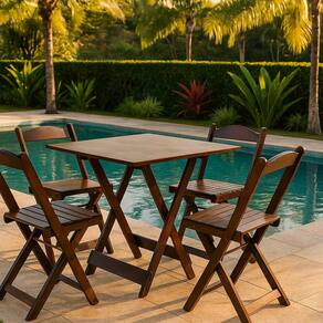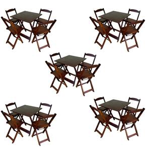 5 Jogos de Mesa Dobrável 70x70 com 4 cadeiras madeira.