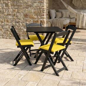 O conjunto é 100% madeira, produzido com madeira mista de pinus e eucalipto de reflorestamento da melhor variedade e selecionadas, proporcionando maior resistência e durabilidade. A Mesa Suporta Até: 50 kg Acompanha Cadeiras: 04 Acompanha Espreguiçadeira: Não Almofada da Cadeira: Sim Altura Ajustável: Não Altura das Cadeiras Até o Chão: 48 cm Altura do Conjunto: 75 cm Ambiente Principal: Jardim e Varanda Base Antiderrapante: Não Cada Cadeira Suporta Até: 150 Cadeira Estofada: Sim codigo_ean: 7900288341129 Cor: Preto Cor do Produto: PRETO Dimensões de Cada Cadeira: 34X38X70 Enchimento da Cadeira: Espuma Enchimento do Encosto: Espuma Itens Inclusos: 50 MESAS E 20 CADEIRAS Largura do Conjunto: 70 cm Manual de Montagem e Instalação: https://product-hub-prd.madeiramadeira.com.br/361834976/documents/c7b90fa1-eb2c-4dbe-b834-f680720b8cdd341832466761772113398485.pdf Marca: MÓVEIS 4I Material da Base da Mesa: Madeira Maciça Material do Tampo: Madeira/MDF Material Principal: Madeira Maciça/MDF Medida do Tampo: 70X70X15 Medidas da Base da Mesa: 70X70X15 Medidas da Mesa: 70X70X15 Mesa Dobrável: Sim Necessita Montagem: Não Origem do Produto: Nacional Peso da Mesa: 10 kg Peso de Cada Cadeira: 4.5 Possui Apoio para os Braços: Não Possui Suporte para Copo: Não Possui travamento: Sim Profundidade do Conjunto: 70 cm Resistência à Água: Não Revestimento da Cadeira: Courino Tampa com orifício removível: Não Tipo de Madeira Maciça da Base da Mesa: Pinus Marca: Não Informado
