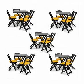 O KIT 5 Jogos de Mesa Dobrável 70x70 com 4 cadeiras de madeira com tampo da mesa em MDF naval.