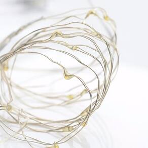 Informações adicionais: Kit com 5 Cordões Fio flexível com 20 Leds; Finciona com 2 pilhas AAA não inclusas ; Comprimento 2 metros; Cor da luz: Branco quente amarelinho ; À prova d'água exceto compartimento de pilhas .